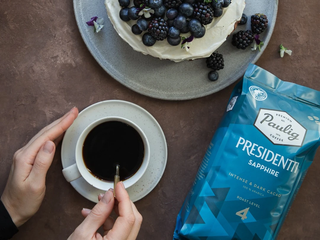 Presidentti Sapphire on tummapaahtoinen kahvi, joka hurmaa rikkaan aromikkaalla tuoksullaan, paahteisen kaakaon ja tummien marjojen makuvivahteillaan sekä viipyilevän tummasuklaisella jälkimaullaan. Ainutlaatuiset piirteensä kahvi saa korkealaatuisista itäafrikkalaisista arabica-pavuista.