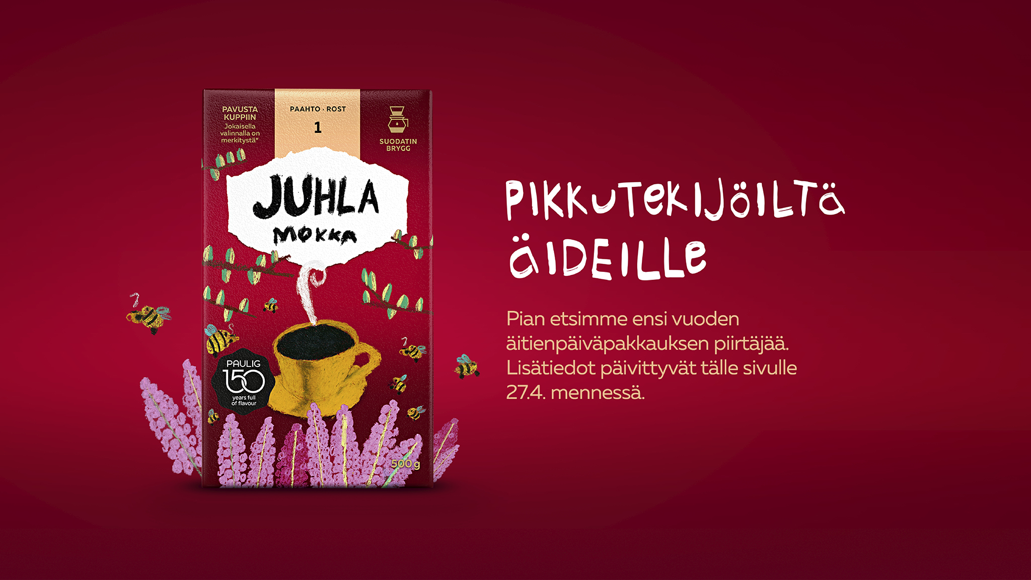 Juhla Mokka on hieno ja täyteläinen 100 % arabica-kahvisekoituksemme, jonka löydät perinteisenä vaalea- ja tummapaahtoisena, luomuna sekä kofeiinittomana versiona. Tämä Suomen rakastetuin kahvisekoitus valmistetaan parhaista Keski- ja Etelä-Amerikan sekä Afrikan kahvilaaduista, ja sen maku luodaan alusta alkaen paahtimollamme.